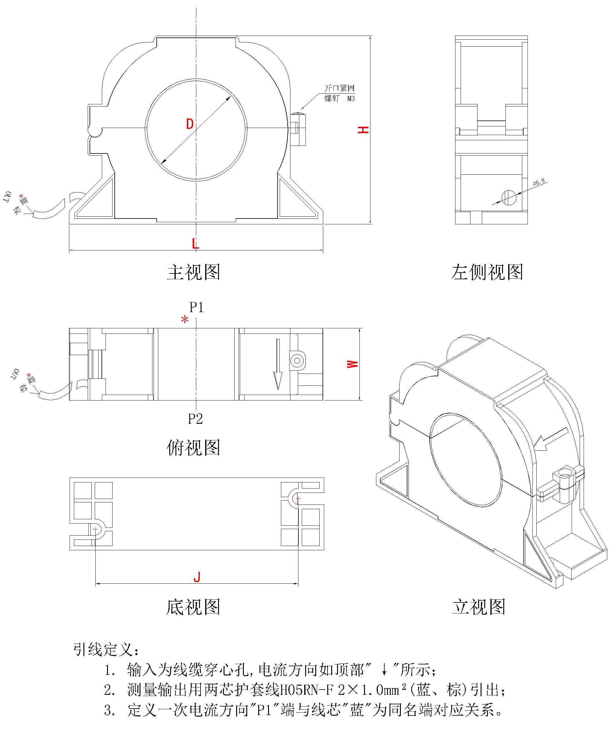 B系列开合式户外防水剩余电流互感器_底座安装固定