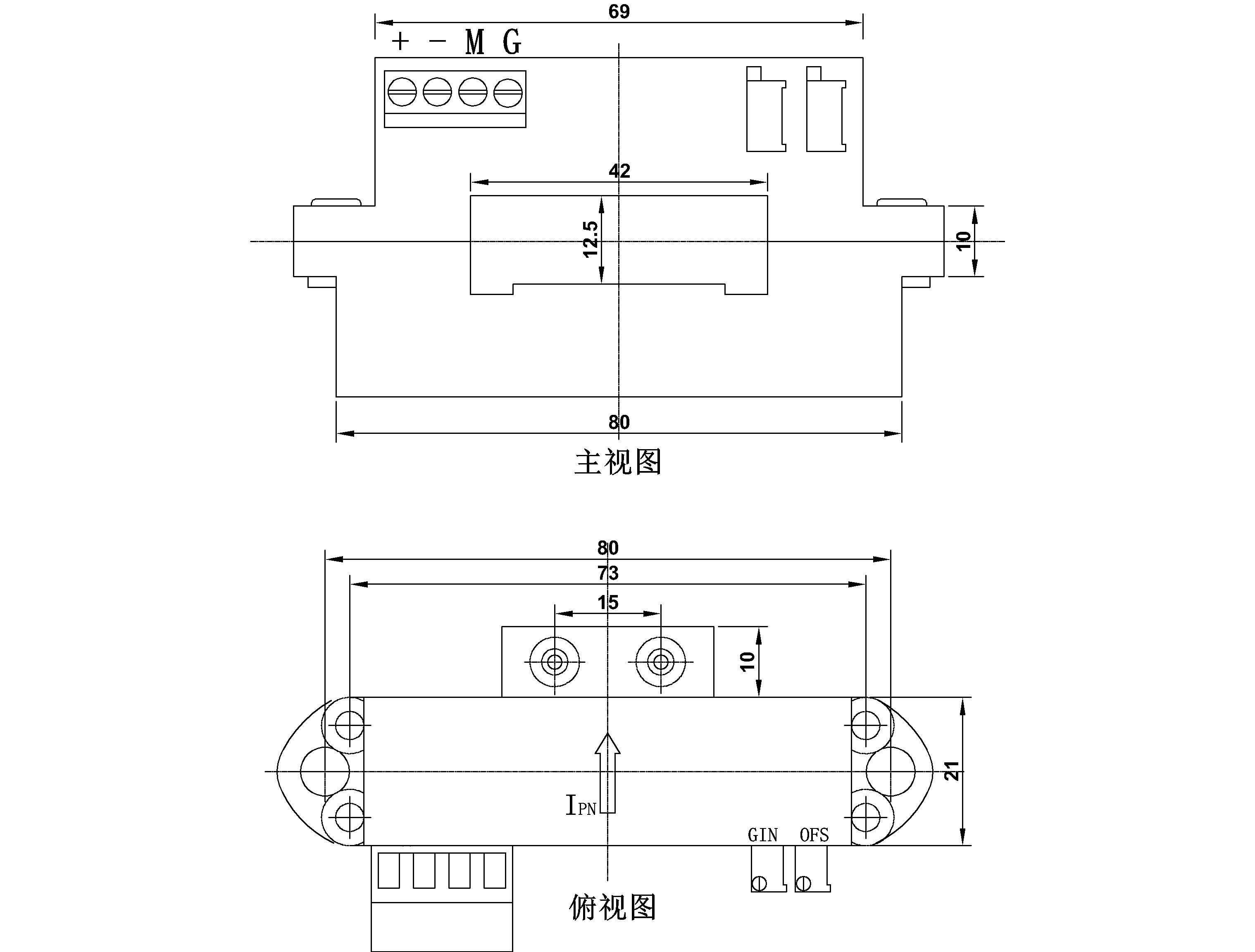 该传感器采用直测式霍尔检测原理工作。原边电流产生的磁通量聚集在磁电路中,并由霍尔器件检测出霍尔电压信号,经过放大器放大,该电压信号精准的反应原边电流。